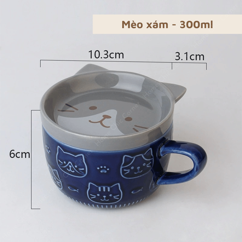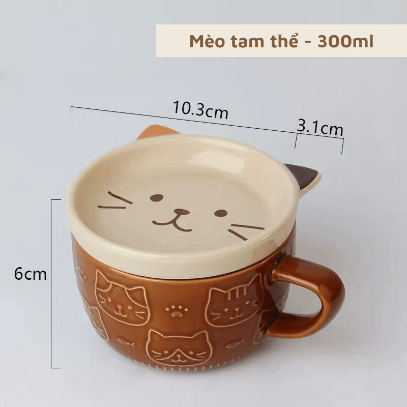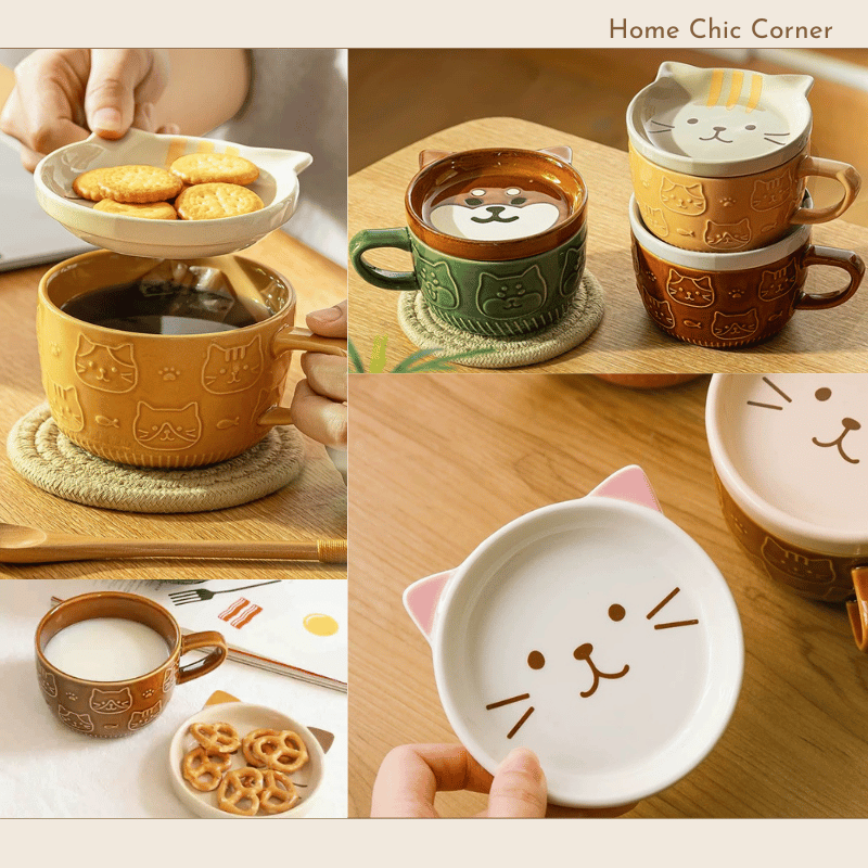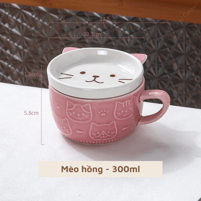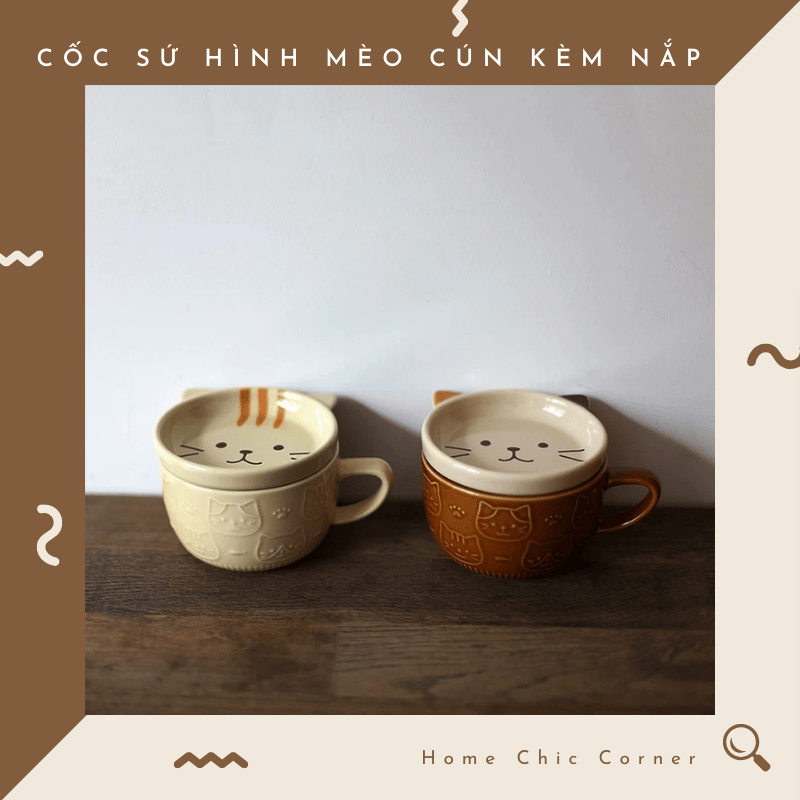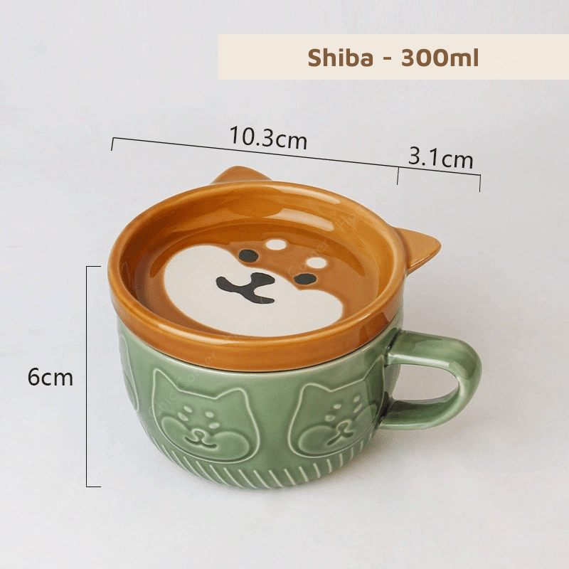 Cốc sứ hình mèo cún kèm nắp dễ thương chất liệu dày dặn phong cách dễ thương đáng yêu | Home Chic Corner