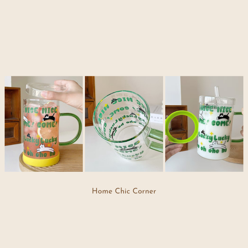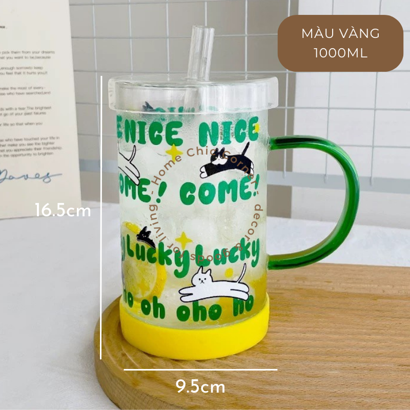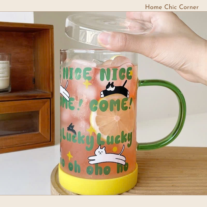 Cốc thuỷ tinh mèo in chữ 900ML, thiết kế dễ thương, nổi bật, dùng decor, trang trí bàn ăn, bàn làm việc xinh xinh | Home Chic Corner