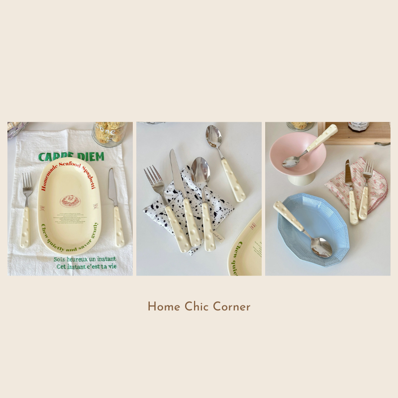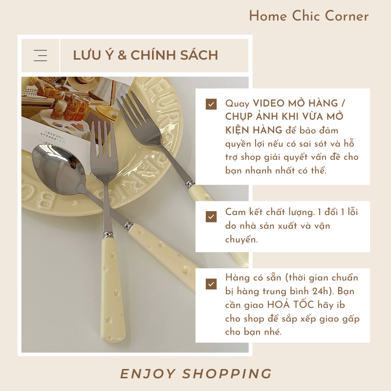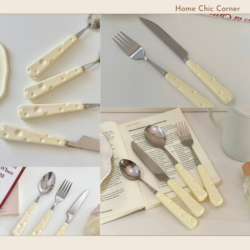 *** Bộ dao muỗng nĩa decor hình phô mai cute màu kem, phong cách hàn quốc dễ thương | Home Chic Corner