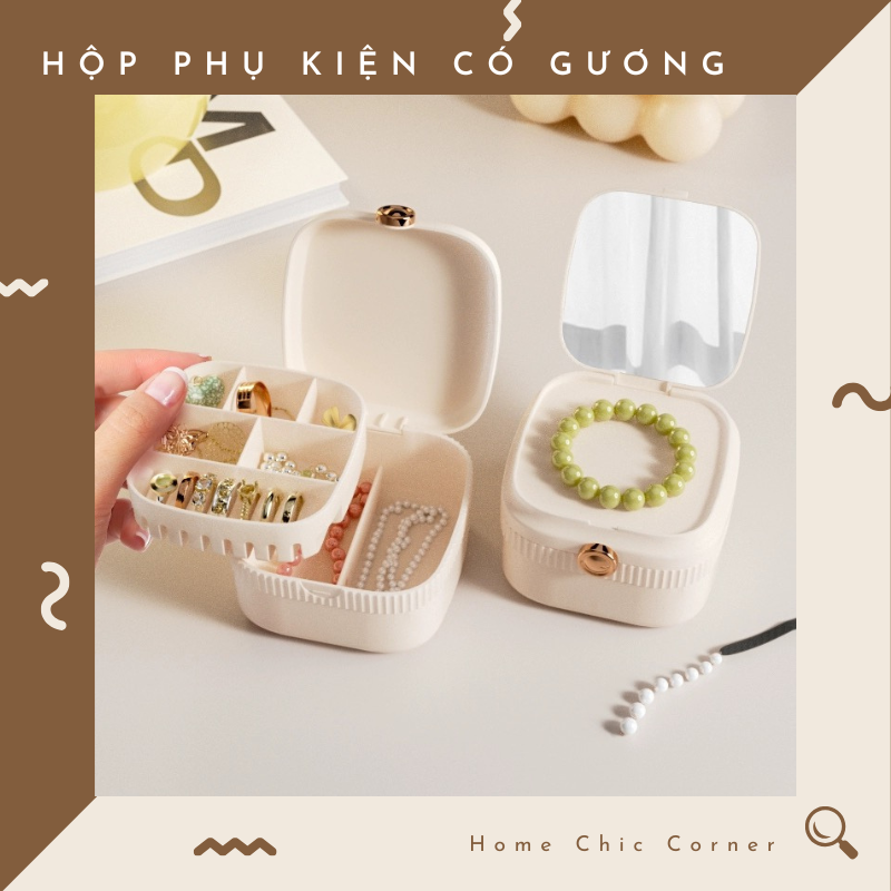 - Hộp đựng trang sức nhiều ngăn sang trọng, nhỏ gọn, có gương tiện lợi