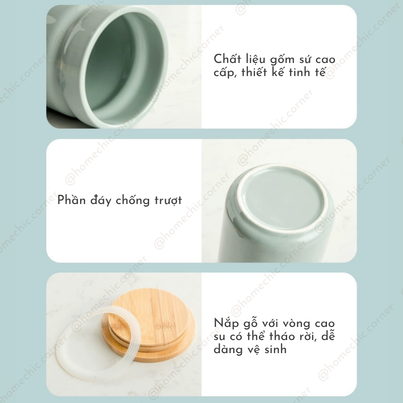- Chất liệu: Hũ sứ nắp g