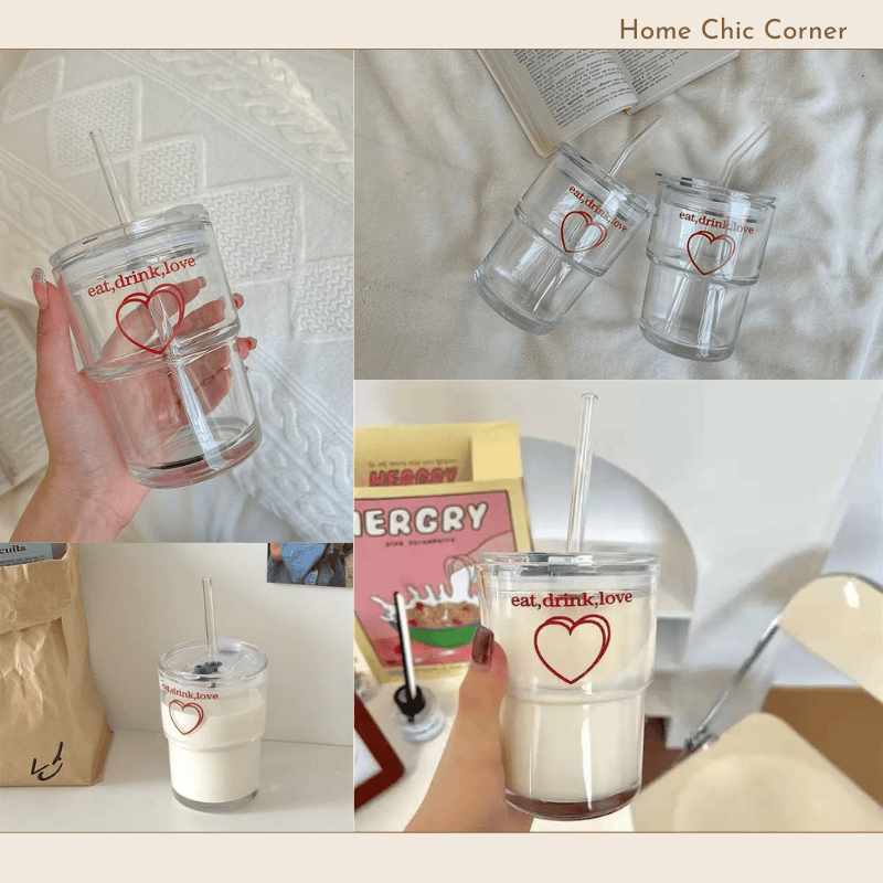 ***Cốc thủy tinh có nắp đậy in hình dễ thương làm quà tặng, decor | Home Chic Corner