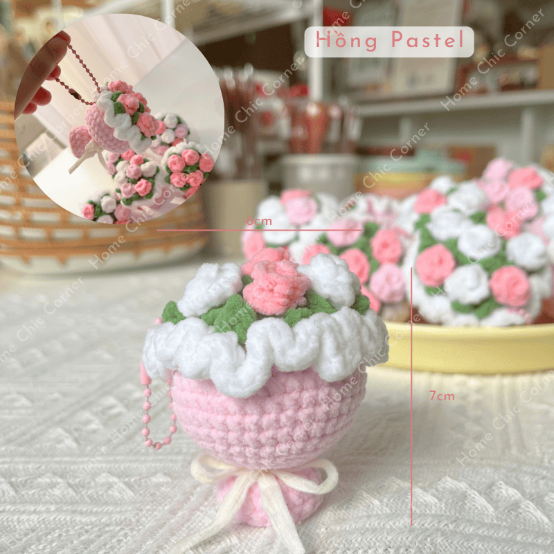 Nhỏ xinh trong lòng bàn tay, mỗi bó hoa được móc thủ công tỉ mỉ bằng sợi len mềm, phối màu dễ thương và tinh tế. Có thể dùng làm móc khoá, charm túi xách hoặc trang trí góc bàn học, mix thêm vào các box quà đều cực kỳ nổi bật