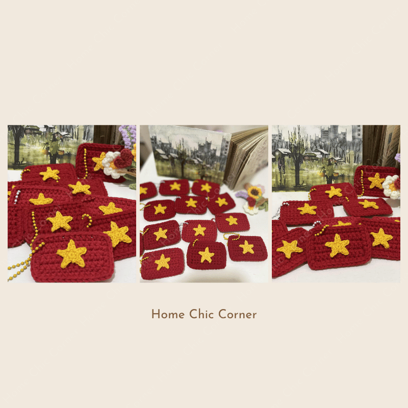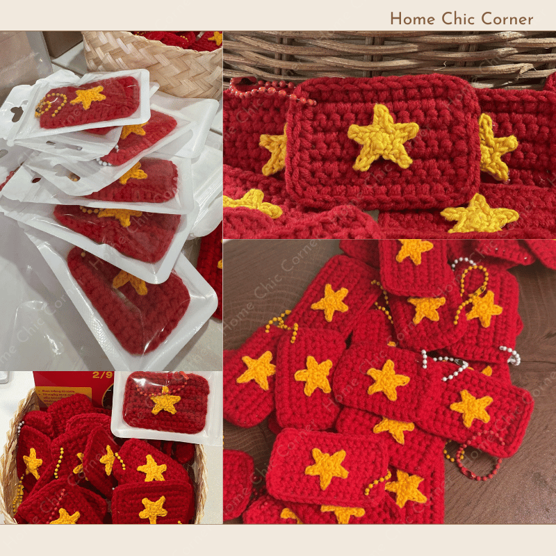 Được đan thủ công bằng len hai mặt hình ngôi sao. Có thể dùng làm móc khoá, charm túi xách hoặc trang trí góc bàn học, mix thêm vào các box quà đều cực kỳ nổi bật