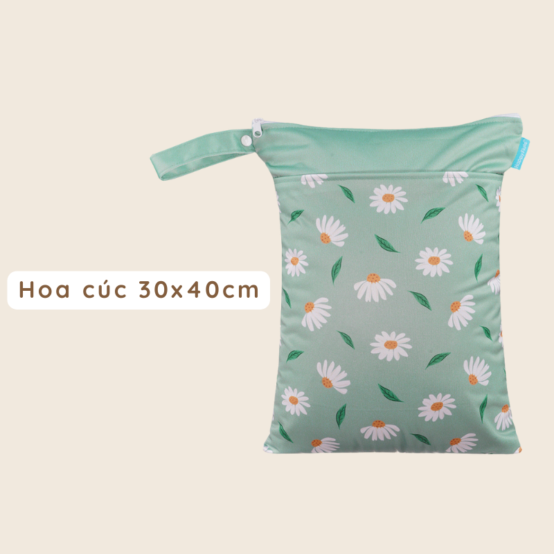 - Bên ngoài được làm bằng vải có tráng lớp chống thấm, khóa kéo, có thể giặt máy và tái sử dụng