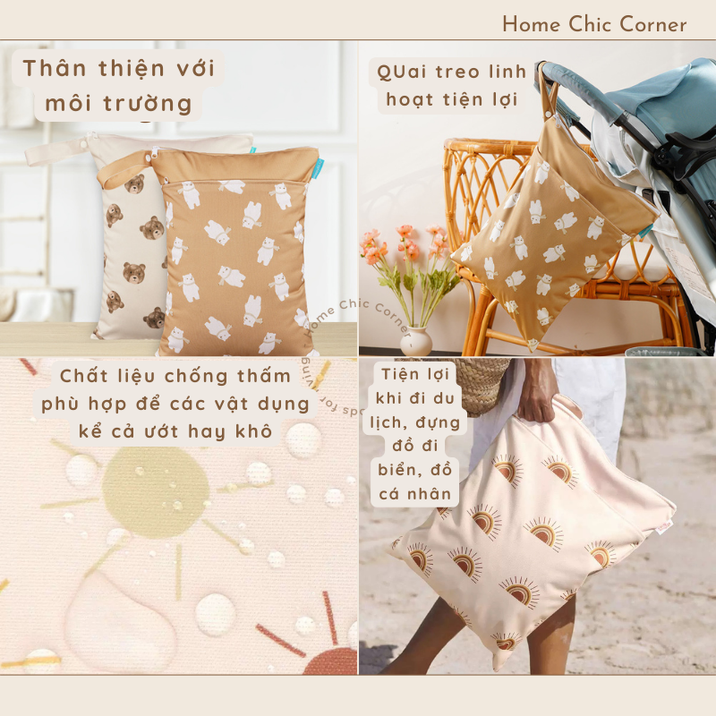 *** Túi đựng đồ ướt / khô du lịch đa năng, đựng đồ bơi, tã em bé, có thể giặt và tái sử dụng nhiều lần | Home Chic Corner